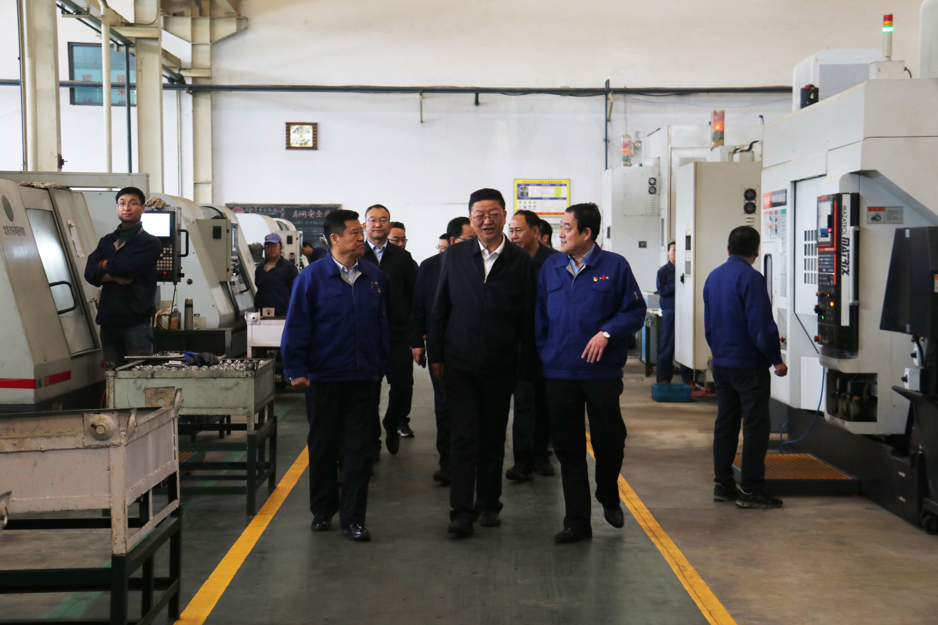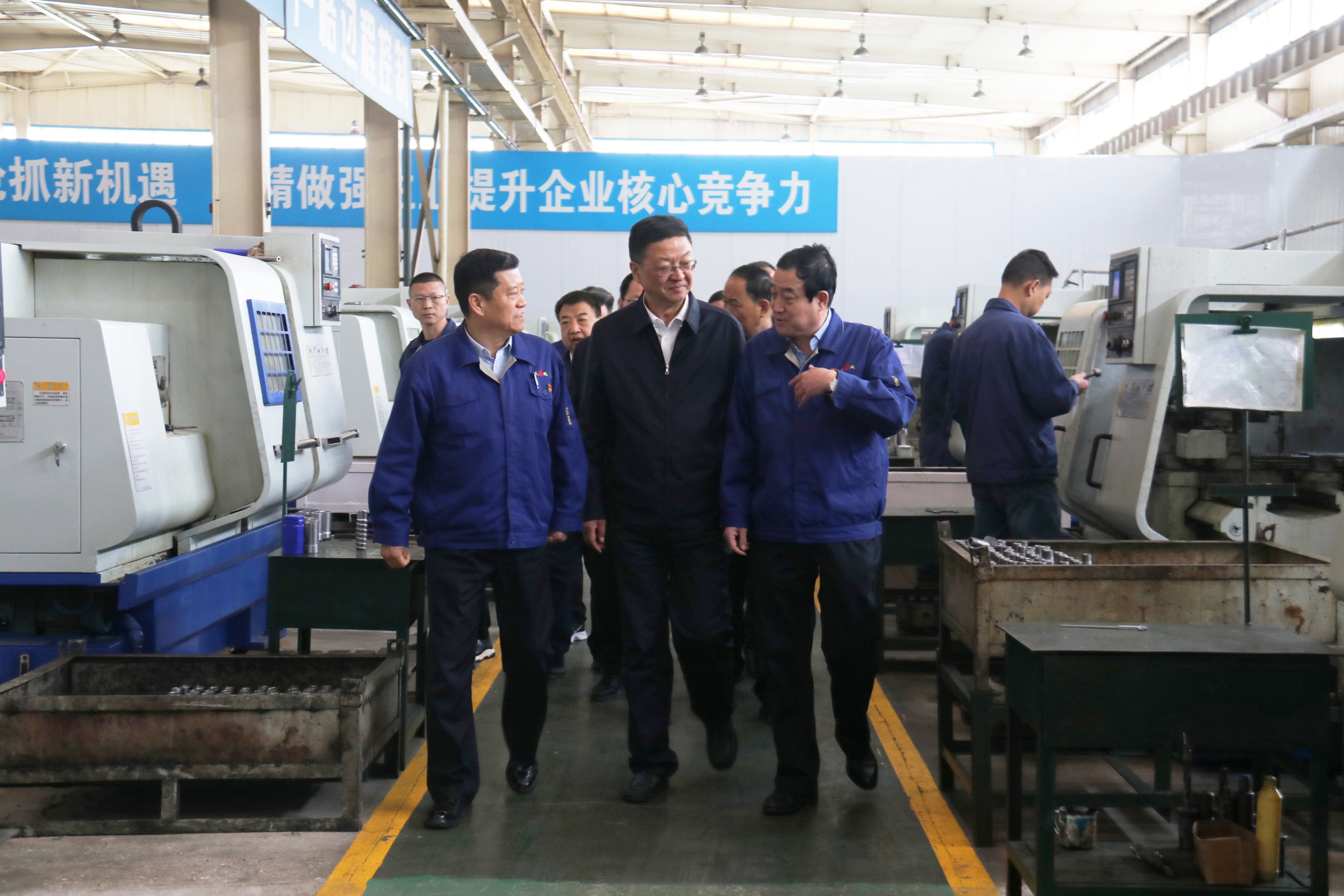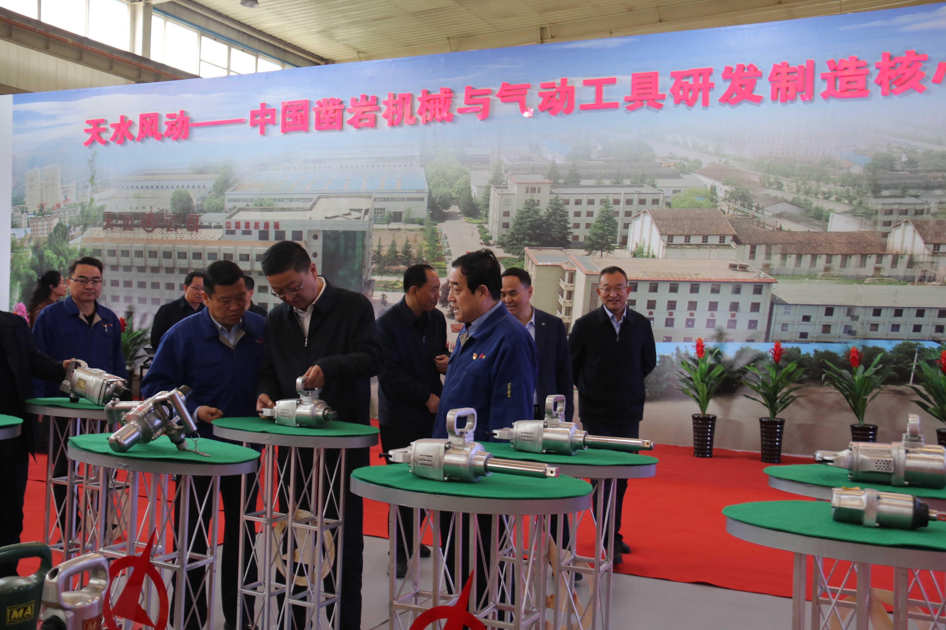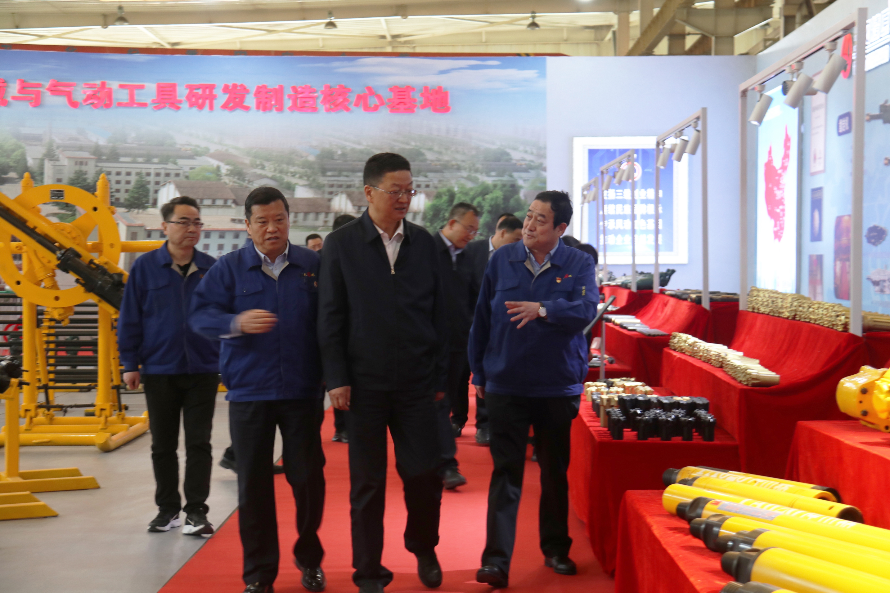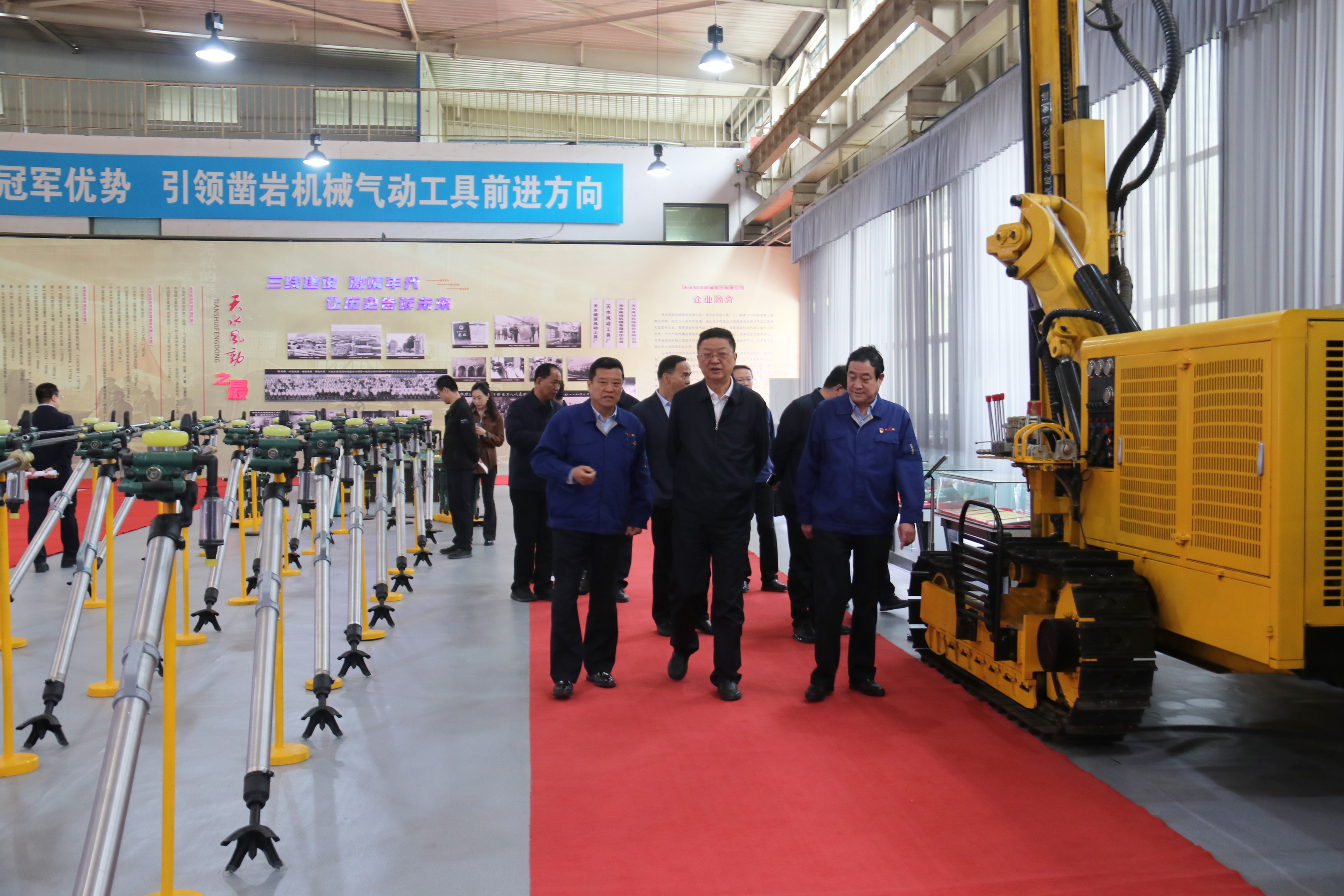 在陪同調(diào)研中,吳興太、單光利向馮書記匯報(bào)了公司近年來在技術(shù)創(chuàng)新、項(xiàng)目建設(shè)、生產(chǎn)制造、市場(chǎng)開發(fā)和行業(yè)“三個(gè)第一”成果鞏固等方面的情況。在新建公司產(chǎn)品展廳,馮書記逐一參觀了公司四大類產(chǎn)品,對(duì)公司YT28等氣腿式鑿巖機(jī)為中國制造業(yè)單項(xiàng)冠軍示范產(chǎn)品,始終保持位居行業(yè)質(zhì)量、產(chǎn)量、銷量“三個(gè)第一”霸主地位,并向行業(yè)質(zhì)量、產(chǎn)量、銷量、信譽(yù)、服務(wù)、滿意度“六個(gè)第一”全力奮進(jìn),及新產(chǎn)品YT29A、YT30G、YT30F(新概念)和新一代高精端液壓鑿巖機(jī)核心技術(shù)攻克國內(nèi)制造領(lǐng)域四大技術(shù)短板進(jìn)入市場(chǎng)取得了可喜銷售業(yè)績(jī)給予肯定。在液壓鑿巖機(jī)車間,馮書記詳細(xì)了解了公司依托科技創(chuàng)新、智能化生產(chǎn),走產(chǎn)品高端制造的思路和措施。在自主投資近千萬元新建精密鍛造生產(chǎn)線施工現(xiàn)場(chǎng),馮書記聽取了項(xiàng)目建設(shè)進(jìn)展及新技術(shù)應(yīng)用與創(chuàng)新等方面情況,詳細(xì)詢問了企業(yè)發(fā)展中存在的困難和問題。